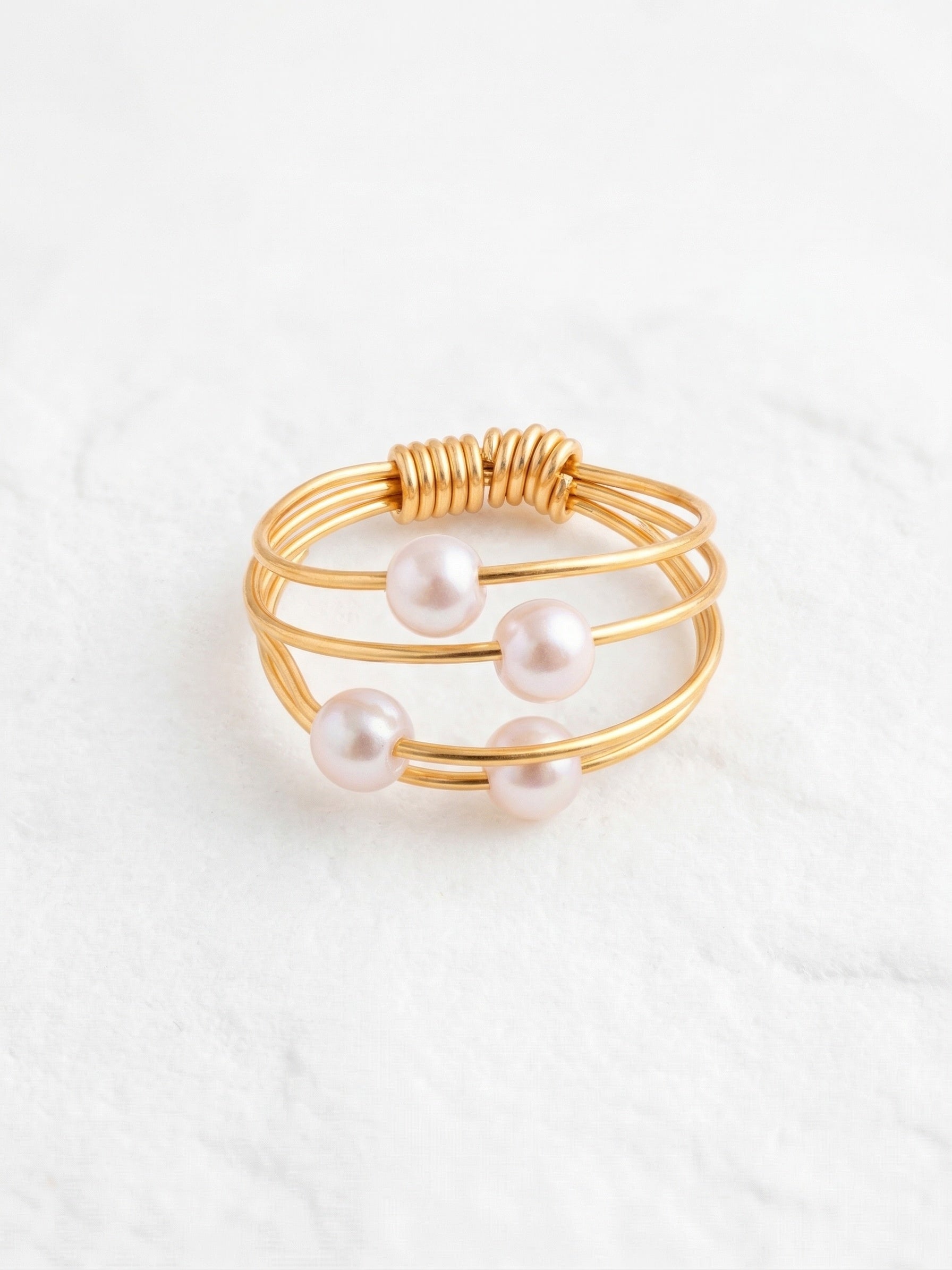 - Bague coeur façonnée à la main avec du fil semi souple, plaqué or 18 carats.